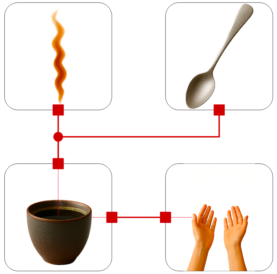A great thing with our restructuring is that we can now nicely connect the spoon to the coffee port, et voilà ! The heat transfer will happen to the spoon!