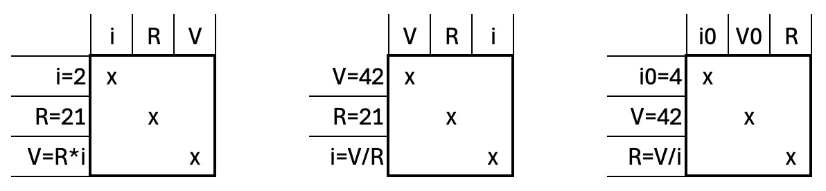 Starting small: if you have one (1) equation with several variables - again, let’s take V = R*i - how many unknown variables can there be in this equation? Only one (1) variable, right? All the others need to be known! Changing the viewpoint, if you have three (3) unknown variables, you need three (3) equations.
