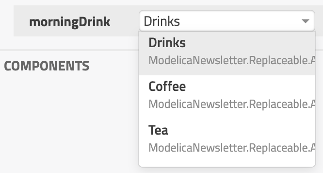 But you could just also do that to make replaceable a function in your model. Let’s say you have a Friction model and you want to give the user the choice to select a CoulombFriction or ViscousFriction, then you can use this construct and achieve the desired goal!