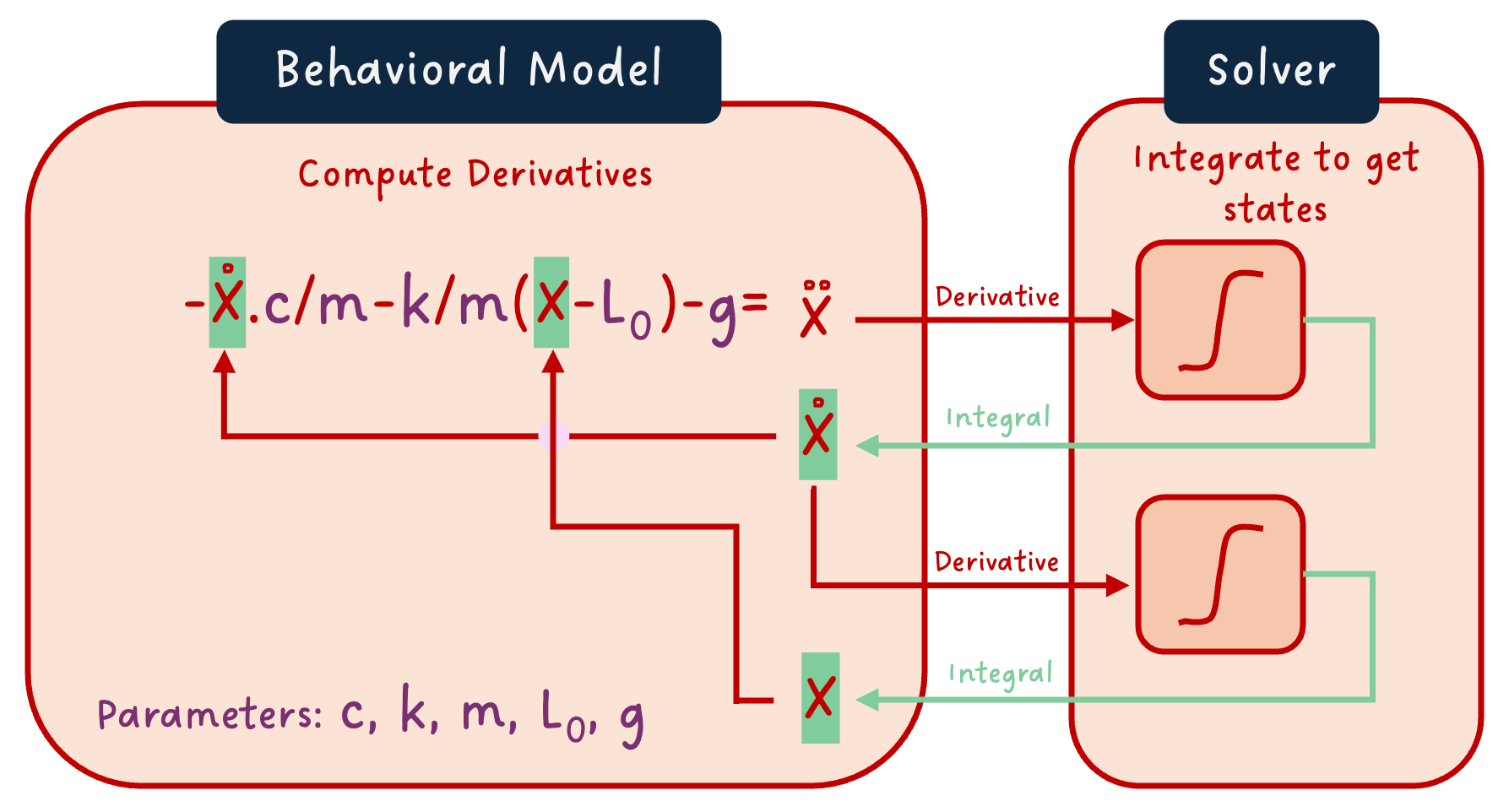 If we separate with our mind the behavioral model that we implement and the solver, then it would look like the image below: