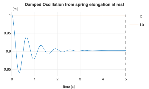 First draft of our model. What do we expect from it? We want to observe the mass position oscillating with less and less energy until it reaches equilibrium. OK? Let’s see: